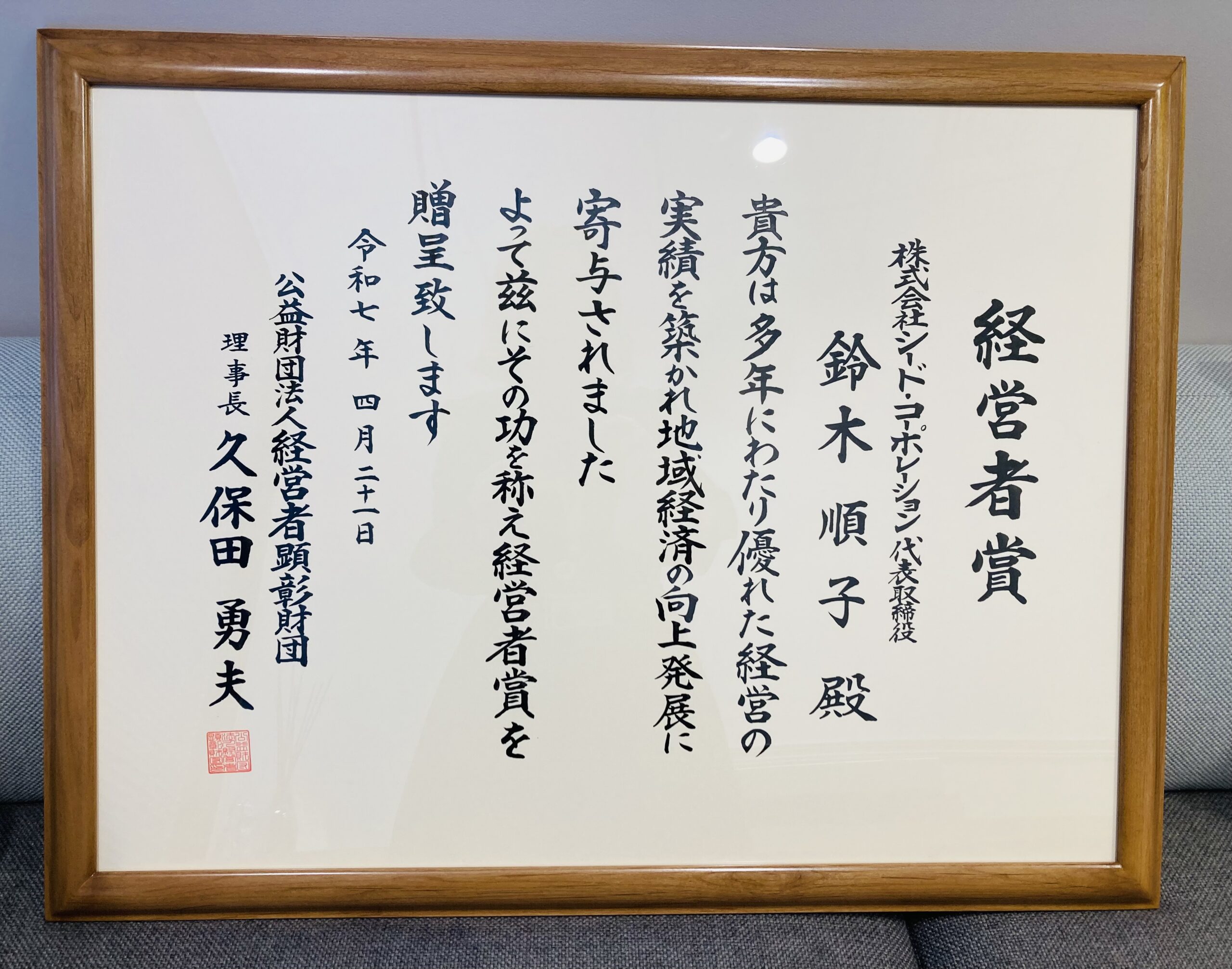 代表の鈴木順子が第52回経営者賞を受賞しました